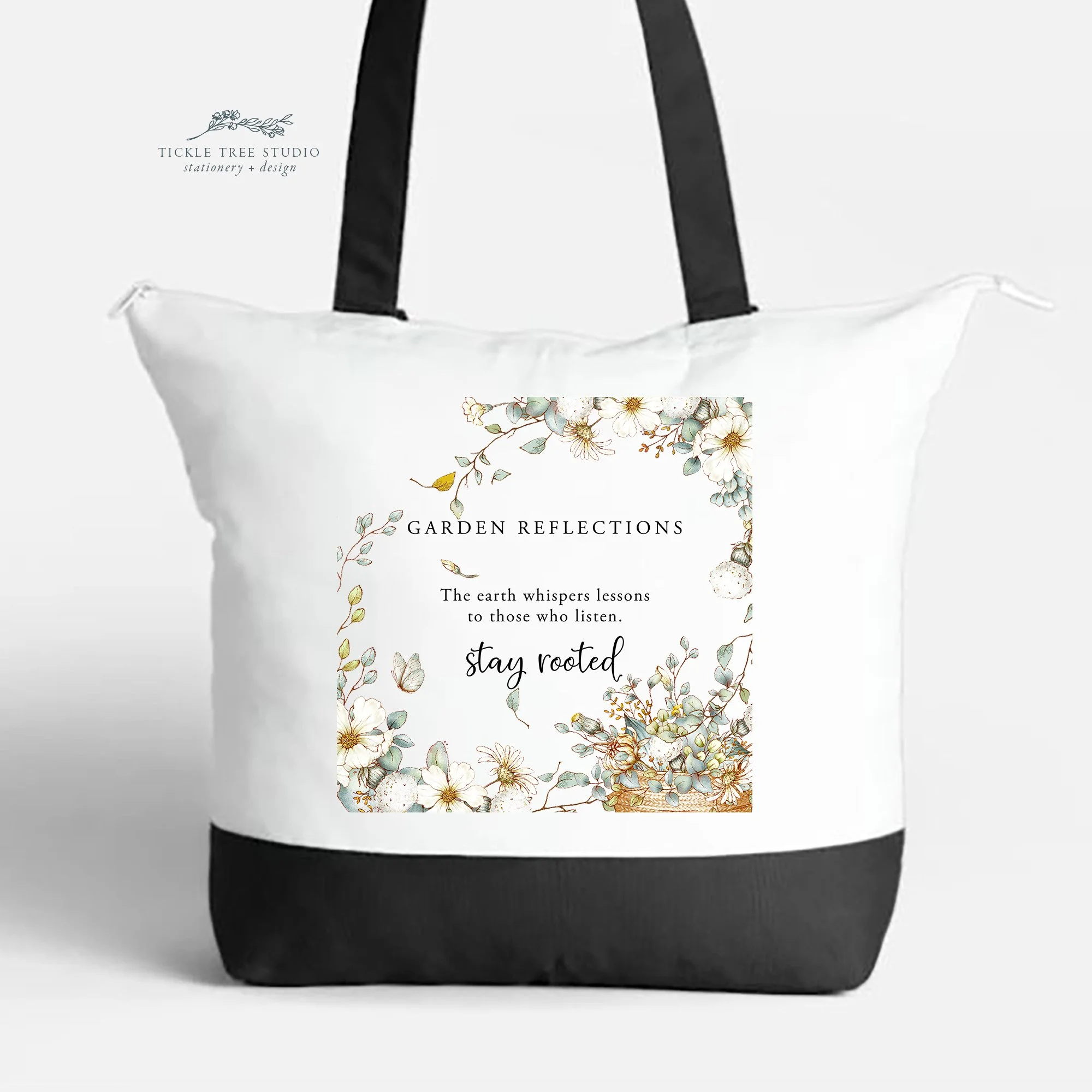 Whimsical Floral Tote Bag – Customizable Cotton Canvas Tote, DTG Printed Design (K023.002)