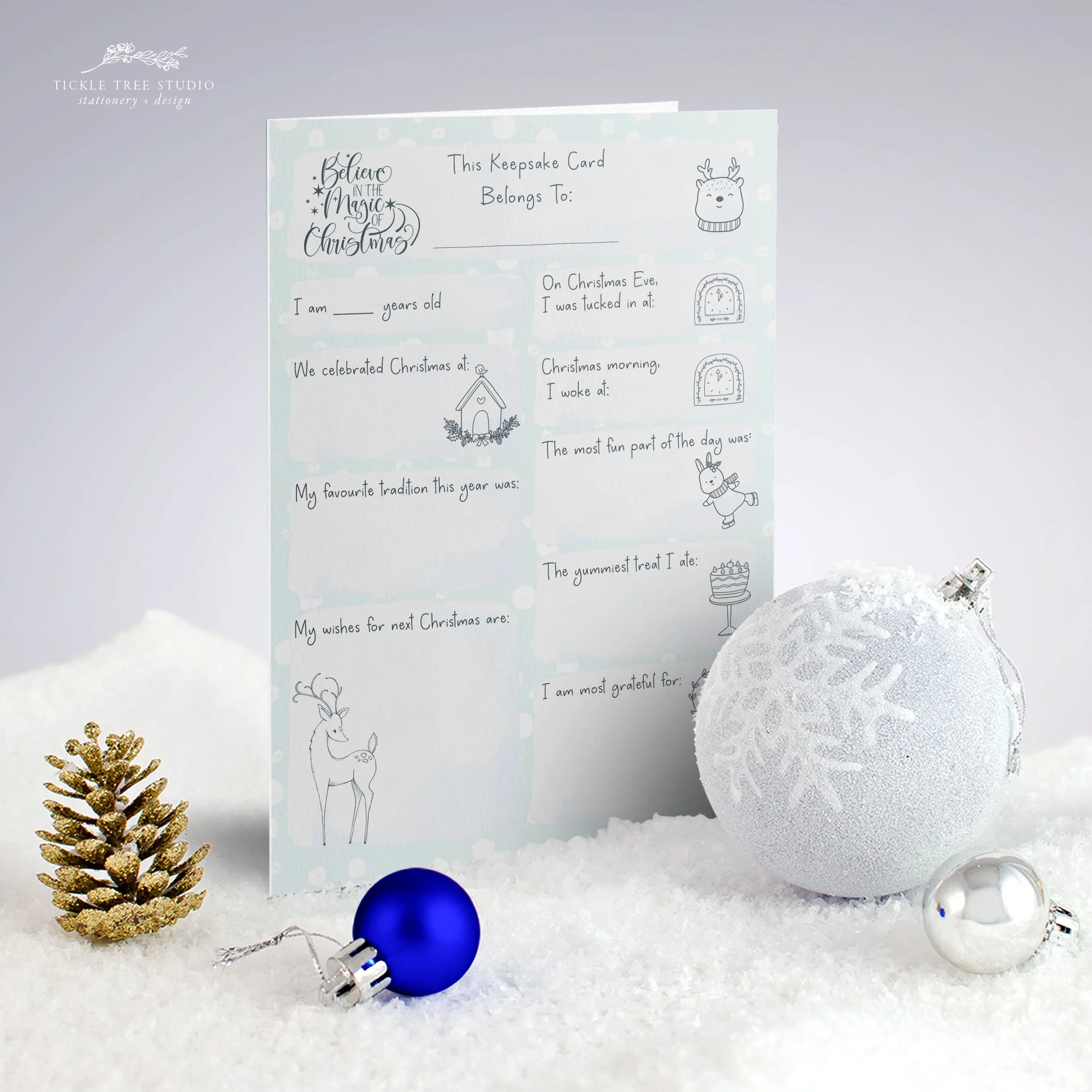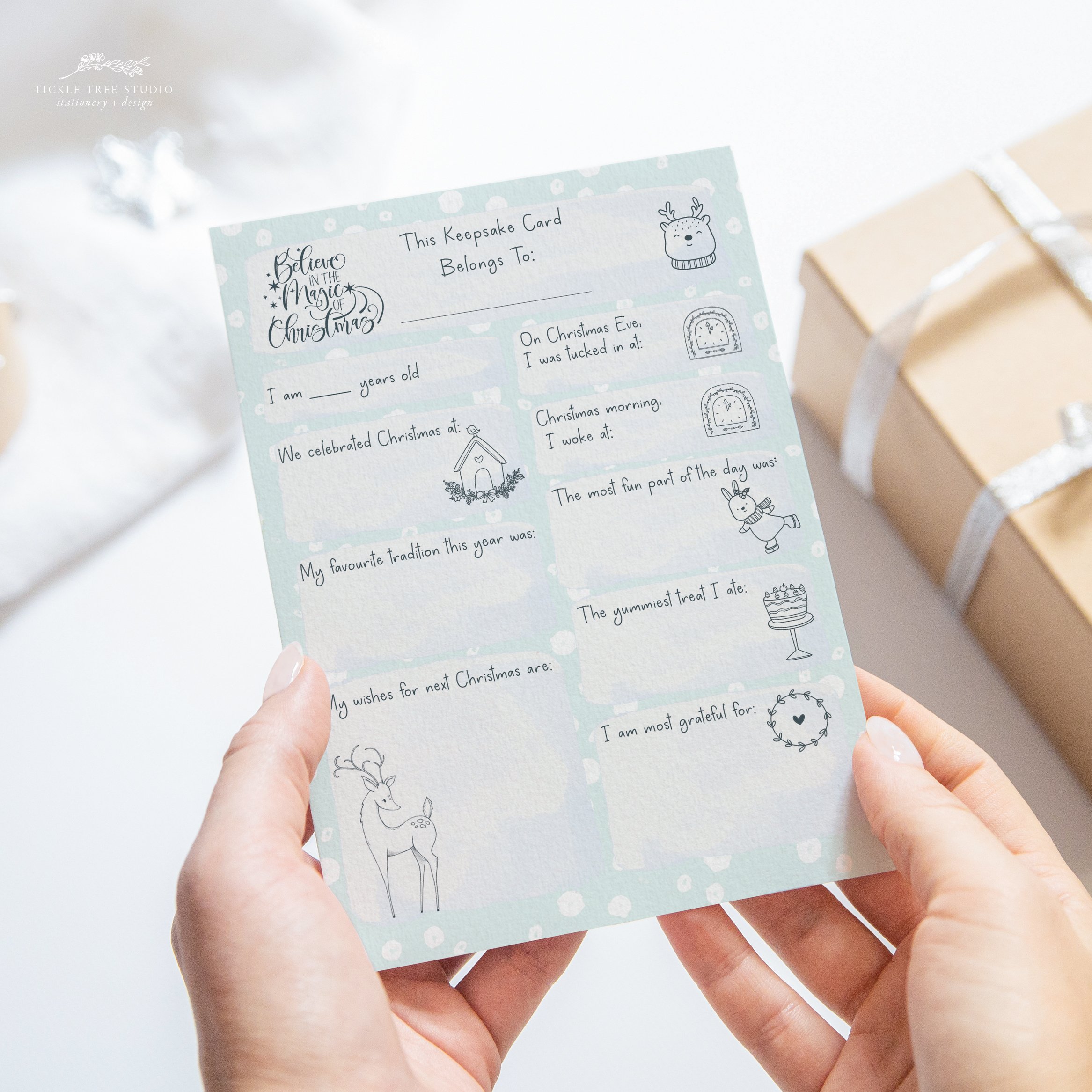 Capture the magic of the season with this Christmas Memories Keepsake Card — a charming way to record special holiday traditions, favourite treats, and joyful moments shared with loved ones. Designed to help preserve the spirit of Christmas from year to year, this keepsake becomes a heartfelt part of your family’s story.