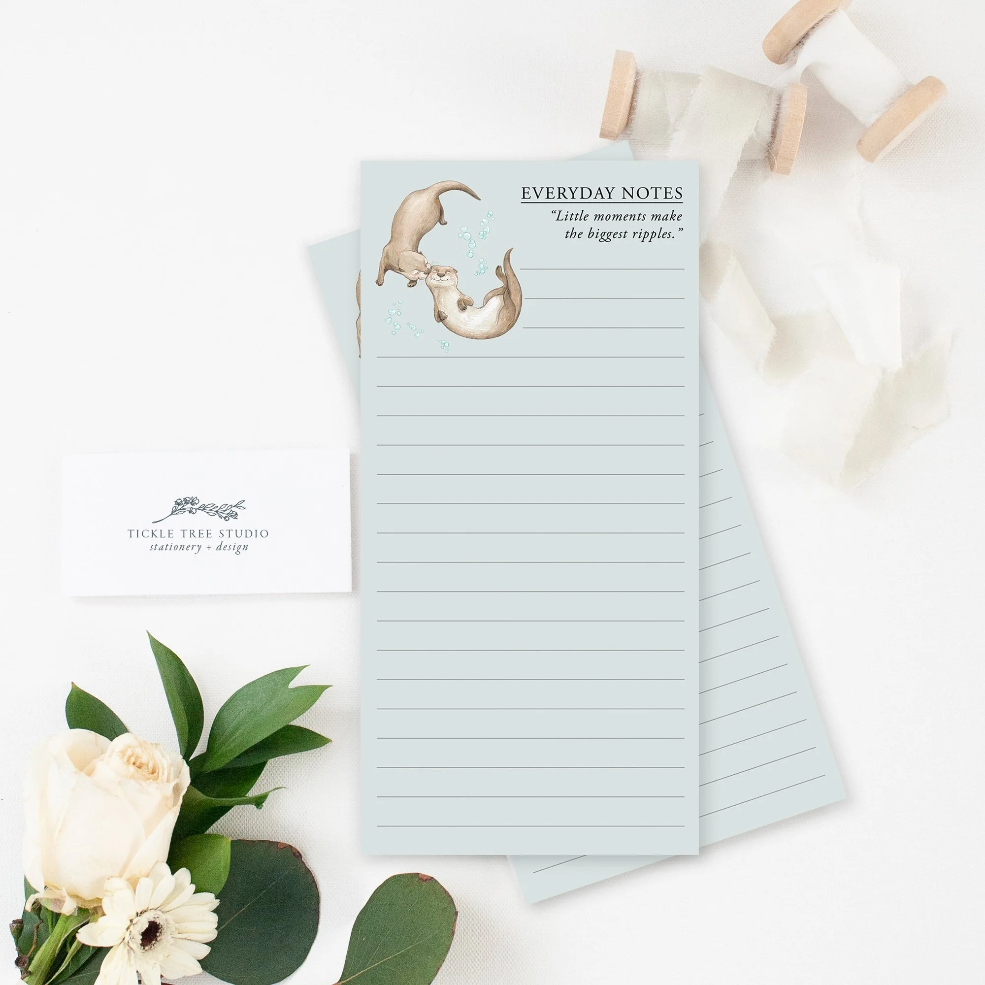 Bring a bit of gentle inspiration to your daily jot-downs with this sweet otter-themed notepad. Featuring two playful otters floating together above the quote “Little moments make the biggest ripples,” it’s a charming reminder to notice the small joys in everyday life.